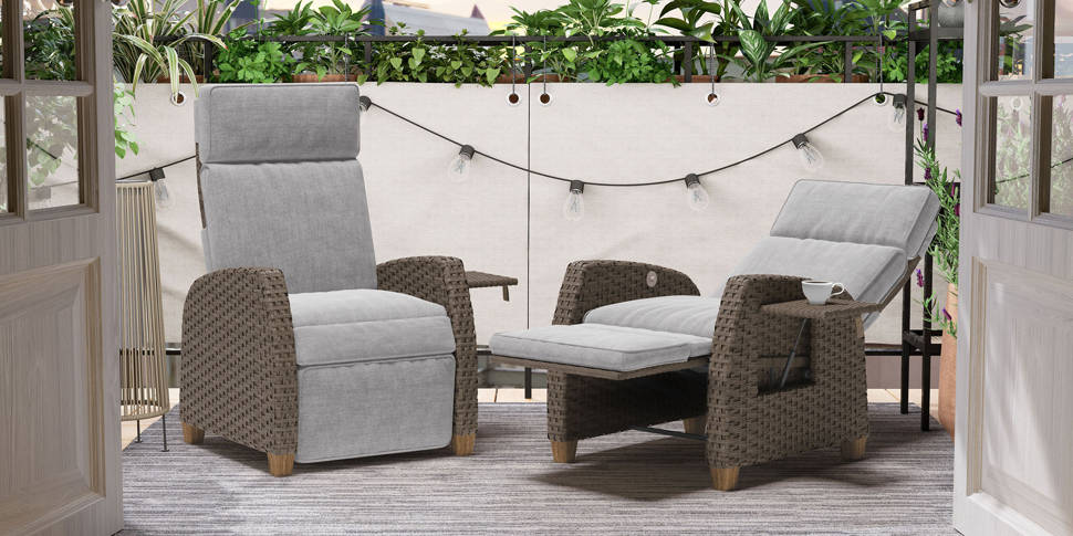 Outdoor Waterproof Recliner (with Flip Table and Cushion)